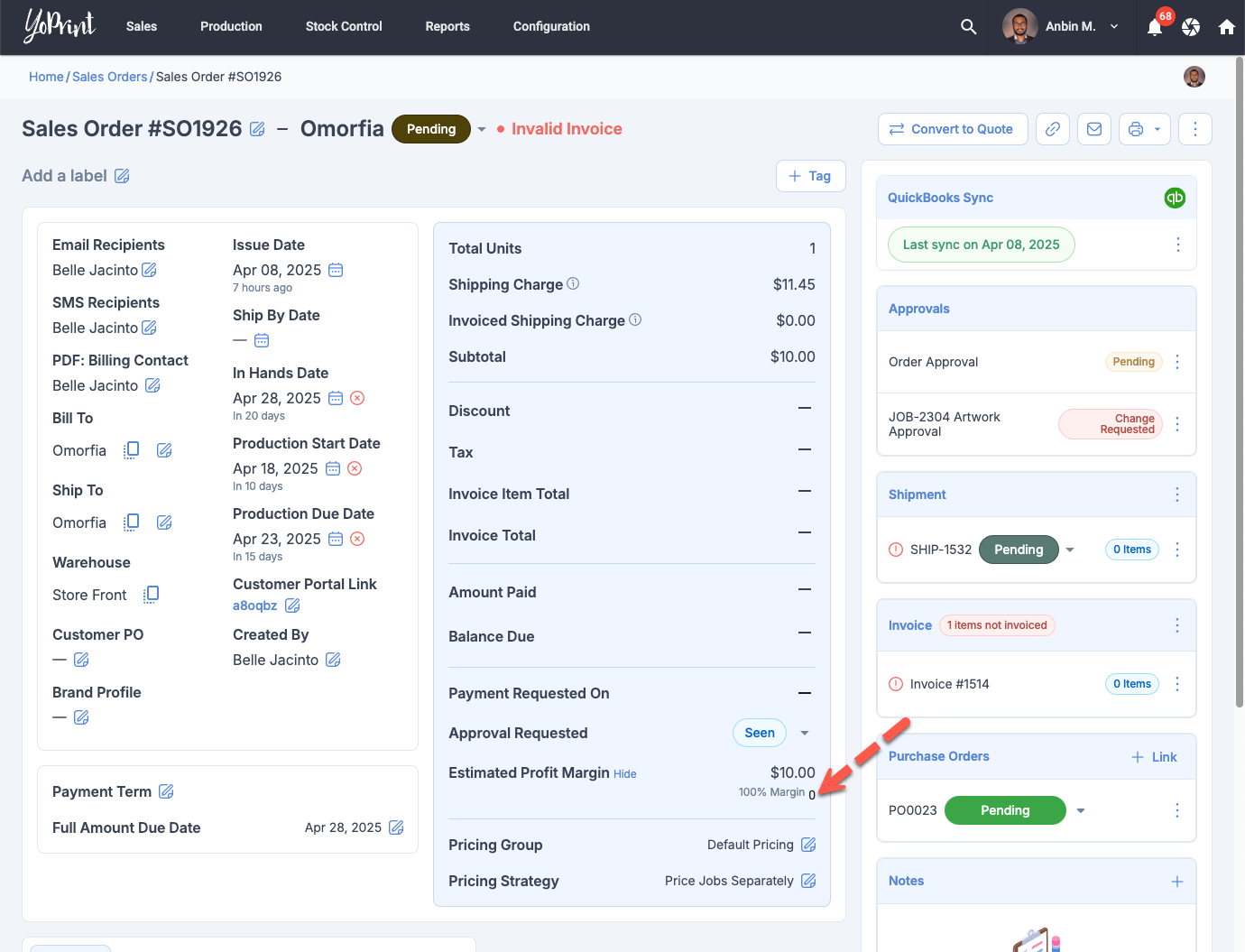 Sales Order: Estimated Profit Margin Calculation Bug