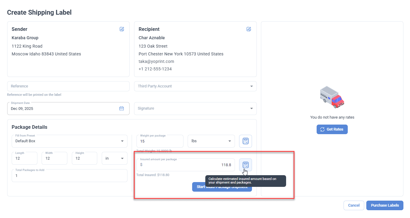 🔧 Fixed issues with the automatic weight calculation and insured amount buttons in the Shippo Package creation dialog.