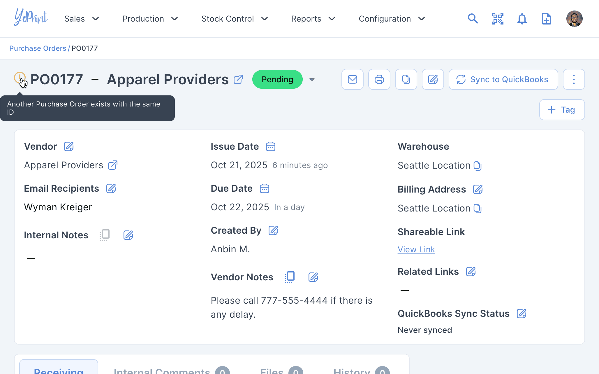 - Detail Page: Warning icon now appears when a duplicate PO ID is detected.
