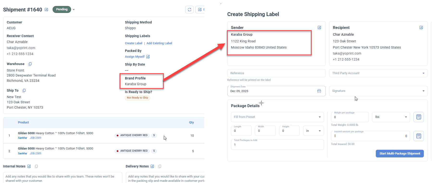 - Sender details auto-fill when Brand Profiles are used