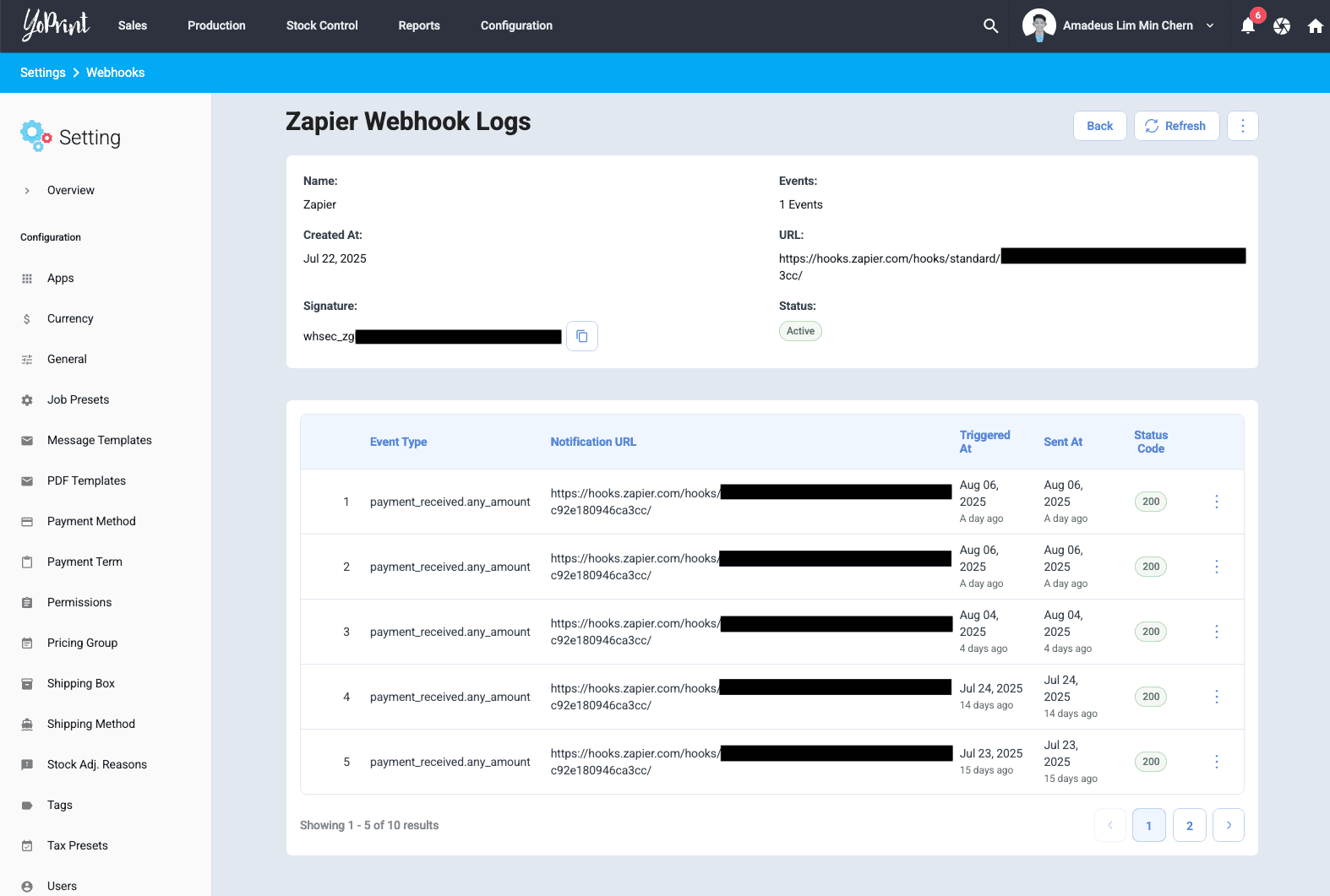 The webhooks page has been modernized with updated UI components, improving usability and visual clarity. We also introduced a dedicated Notification URL column for better audit tracking.