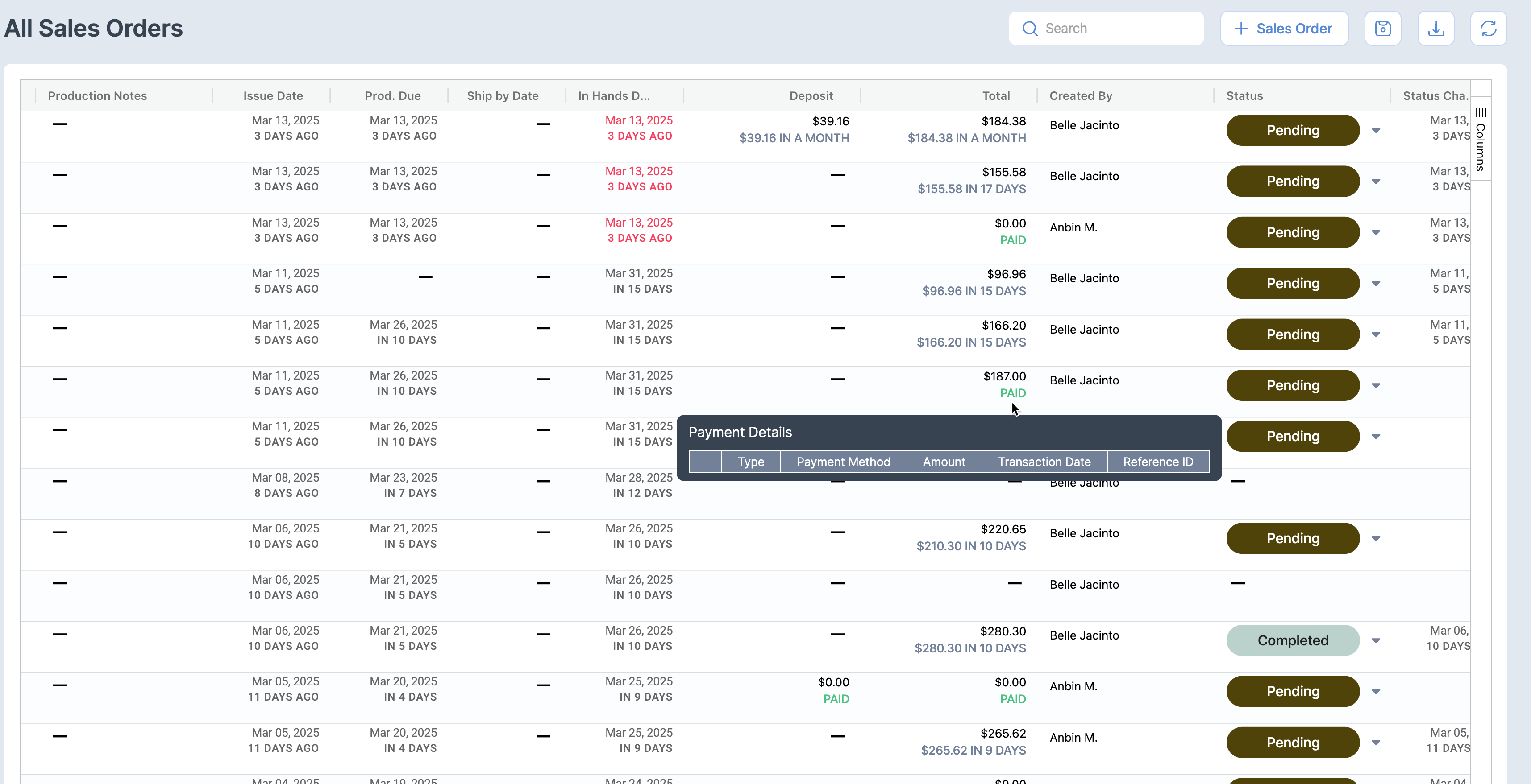 We fixed a bug in Sales Order List Page where hovering over the payment is not showing the payment details.