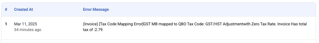- Validation Added: If you attempt to sync an invoice with a tax amount greater than zero to a Zero-Rate QuickBooks tax, an error will be thrown. You can resolve this by updating your tax mapping in the QuickBooks settings page.