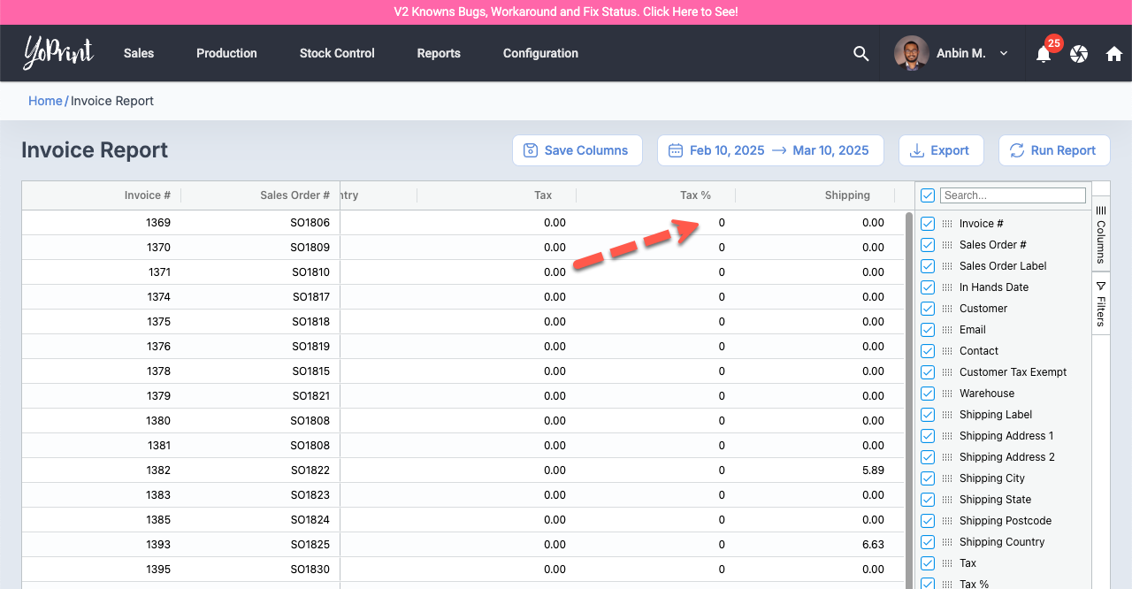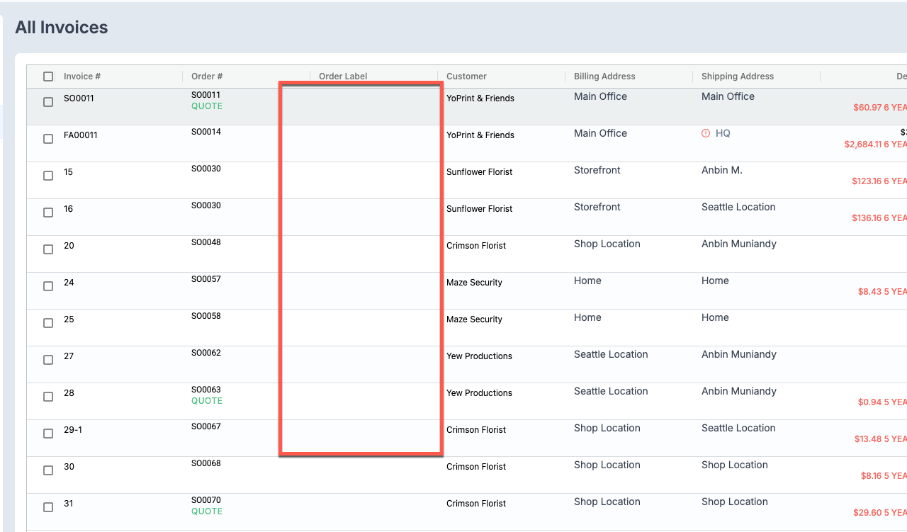 Invoice List Page: Order Label Is Missing