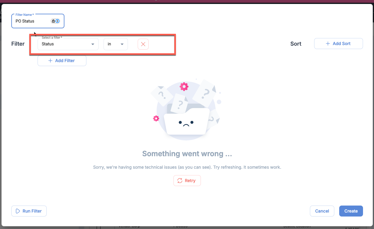 Purchase Order Saved Filter: Filtering By Status Is Not Working