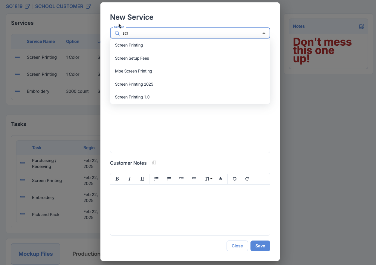 Job: Add Search To Service Selection