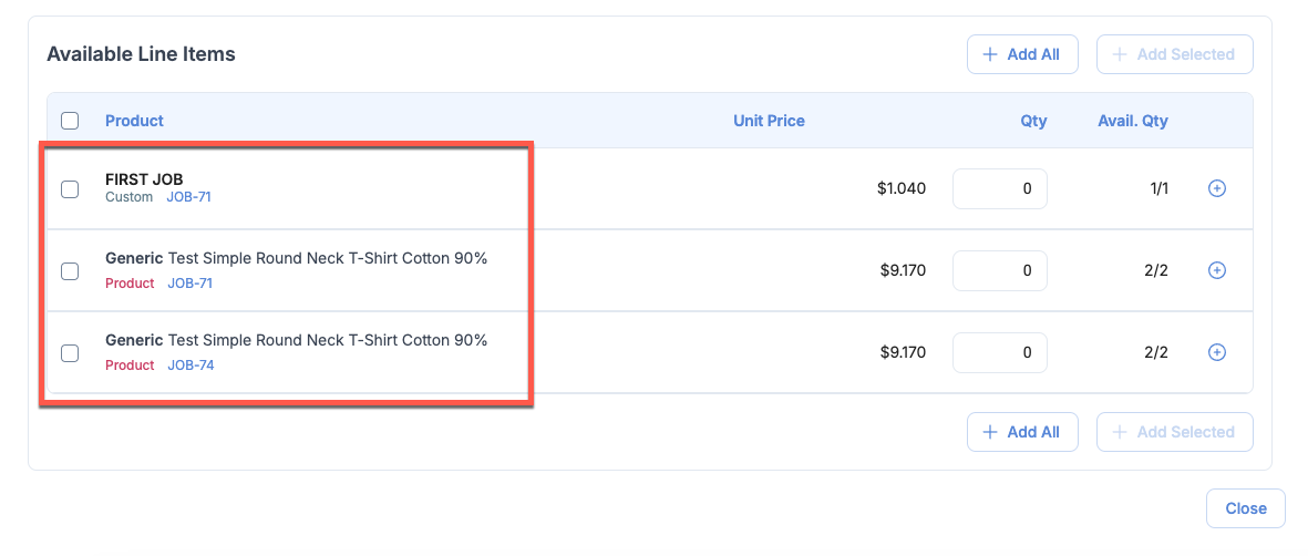 Previously, the avaialable line items in Invoice Create / Edit Dialog were sorted arbitrarily. We now sort it based on the order that it appears in Sales Order Detail Page respecting the order of the Job as well as the order of the line item.