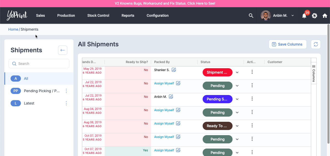 Shipment List Page: Changing Shipment Status Doesn't Work