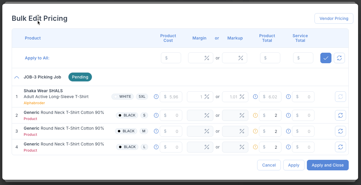 Fixed an issue where using Bulk Edit Pricing on user uploaded products would incorrectly reset the product cost to $0 when changing margin or markup percentages, causing users to lose their original cost data.