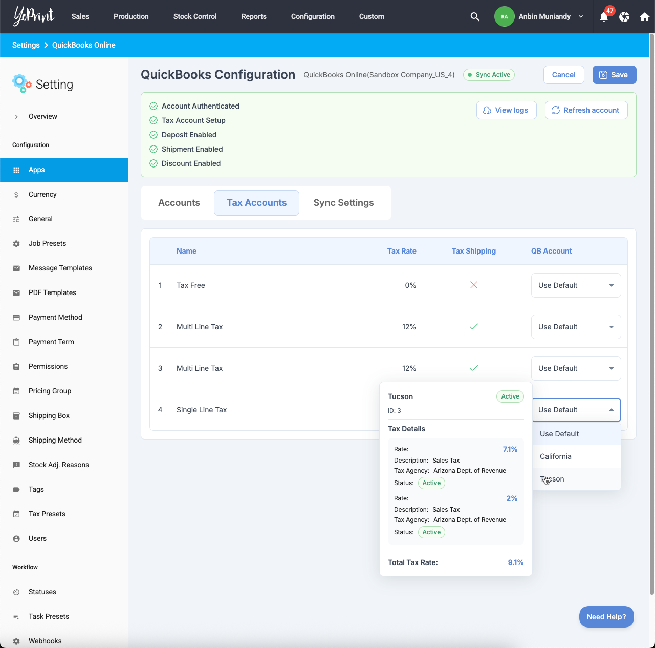 We've redesigned QuickBooks Setting page to follow our modern UI. We've also added extra information around taxes to help you select taxes better.