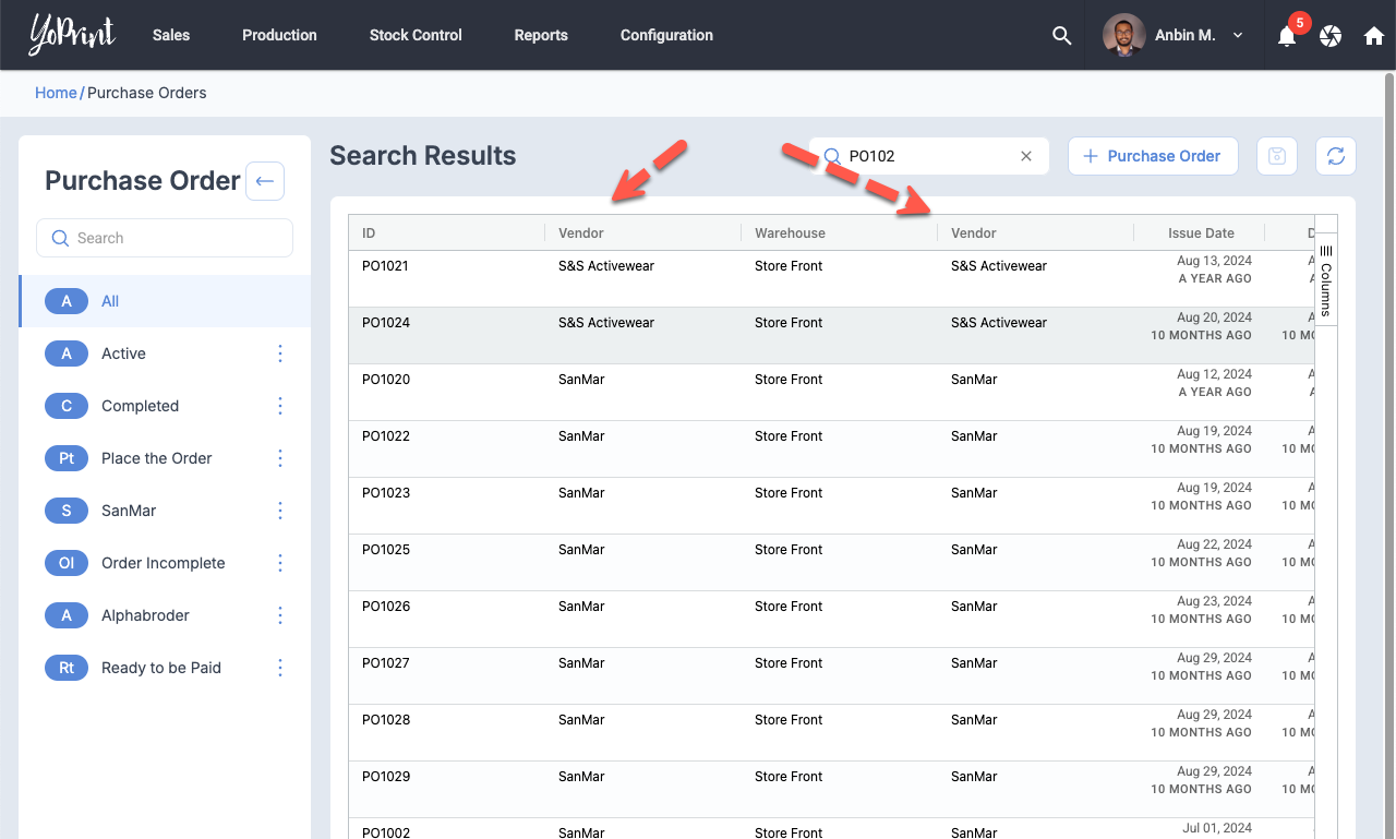 We were mistakenly showing vendor name twice in Purchase Order search result. This has been fixed now.