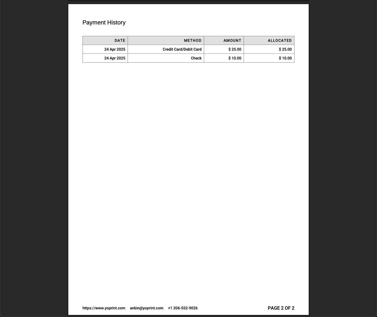 Invoice PDF: Add Payment History