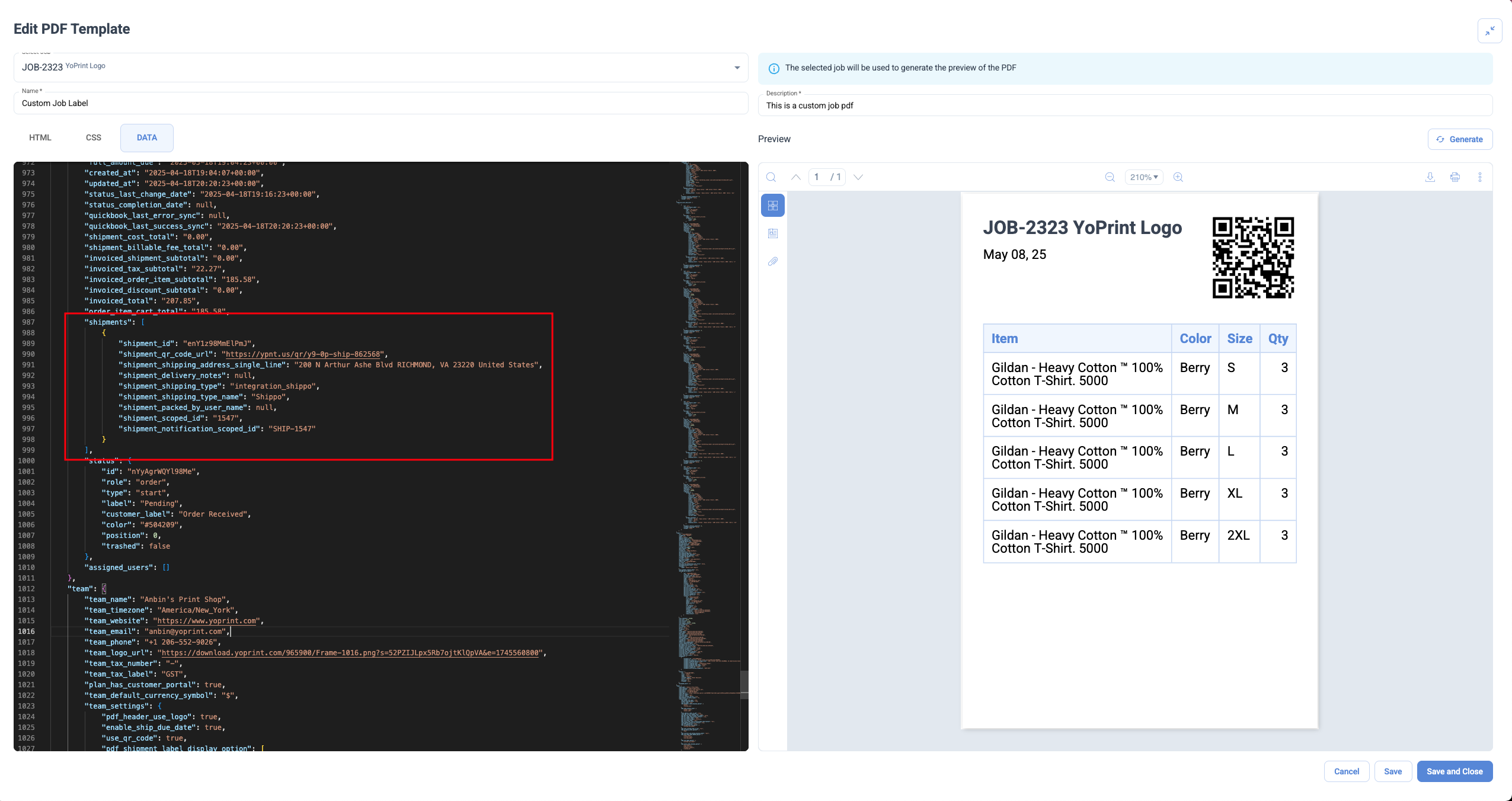 PDF Template: Add Shipment Info to Job Data