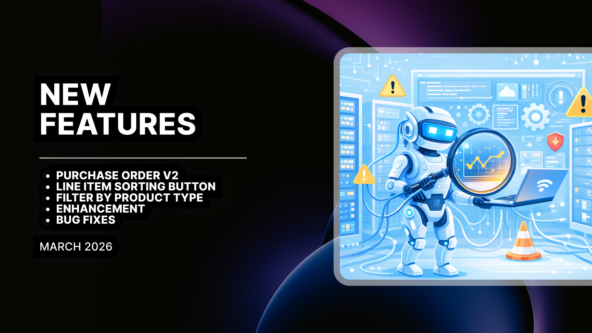 Improved editing and receiving for Purchase Orders. You can now rename custom product and fee items, edit PO numbers on existing POs, see receiving quantities update instantly, and experience better loading feedback and error handling when creating POs from Sales Orders.